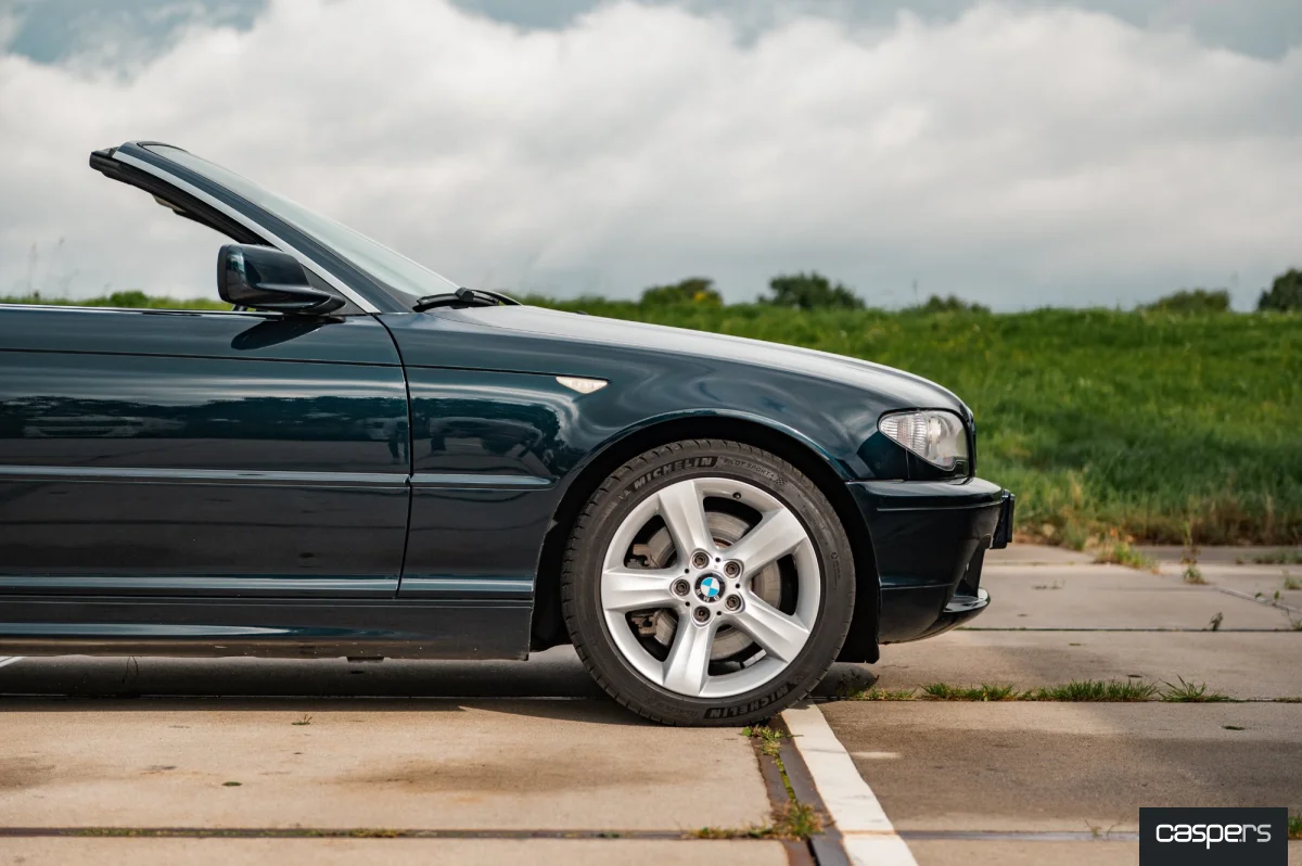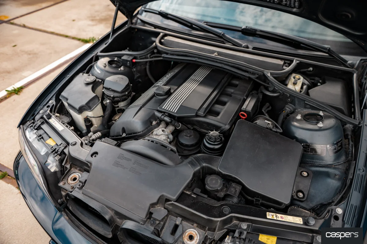 Daarnaast is niet alleen de kleur en de optielijst ‘dik’, maar is zijn motor dat ook. Achter die chromen BMW ‘niertjes’ ligt namelijk de oerdegelijke en soepel lopende M54B30 motor met 231 pk. Kenmerkend aan deze motor is zijn lineaire vermogensopbouw en turbine achtig geluid. Het past perfect bij het GT / luxe karakter van deze 3-serie cabriolet.