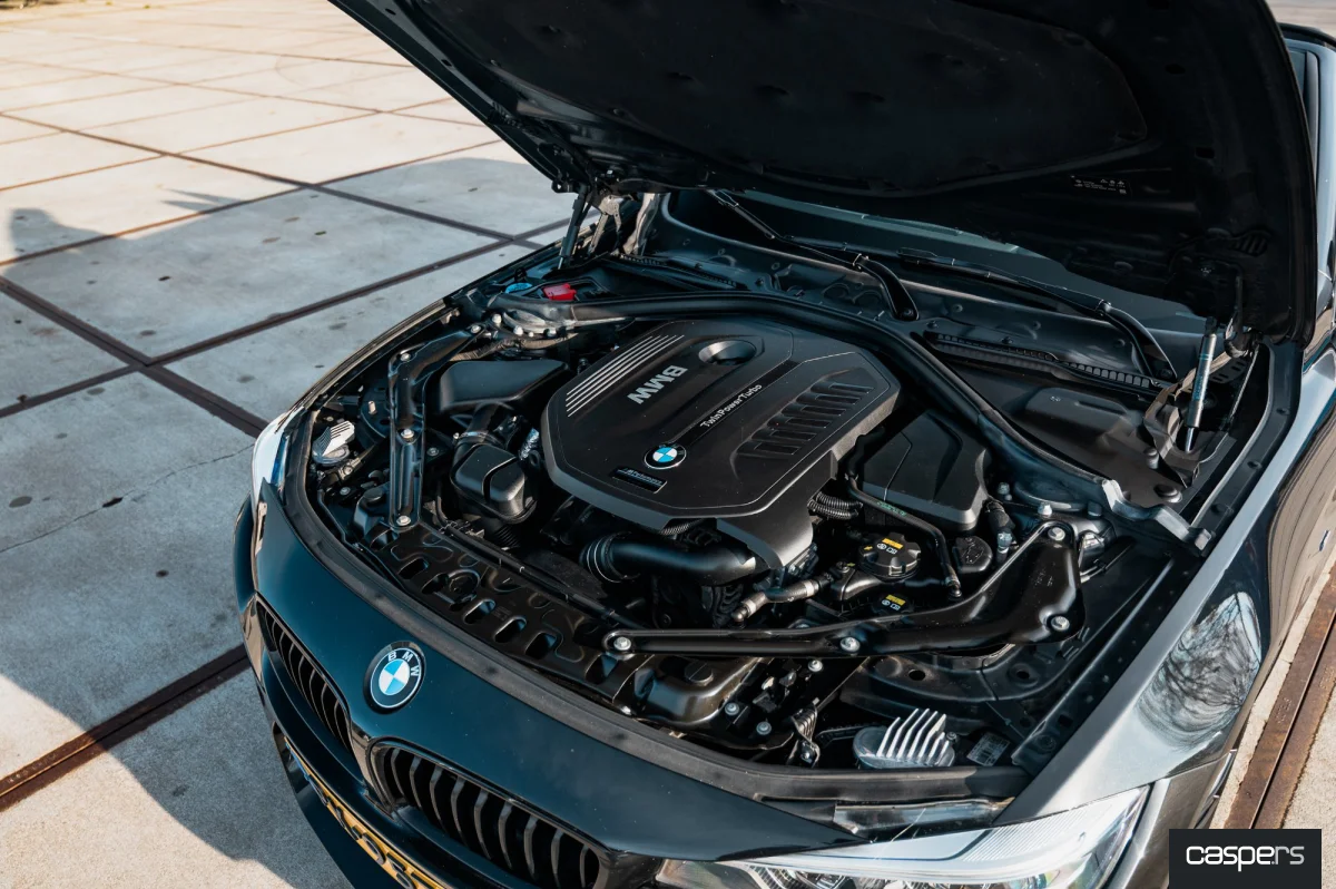 Met standaard 326 pk en 450 Nm op de achterwielen is de 440i al een serieus snelle auto. Dit exemplaar is echter door BMW zelf voorzien van de M Performance Power Kit. Die upgrade zorgt ervoor dat de zescilinder van de 440i 34pk en 50 Nm extra vermogen krijgt met een totaal vermogen van 360 pk en 500 Nm koppel. En niet alleen het motorvermogen is toegenomen, ook het geluid wat de auto produceert is luider dankzij een M Performance uitlaatsysteem. Wanneer je de BMW in de sport stand zet transformeert de 440i vervolgens van een comfortabele cruiser naar een pure sportauto dankzij het adaptieve M onderstel.