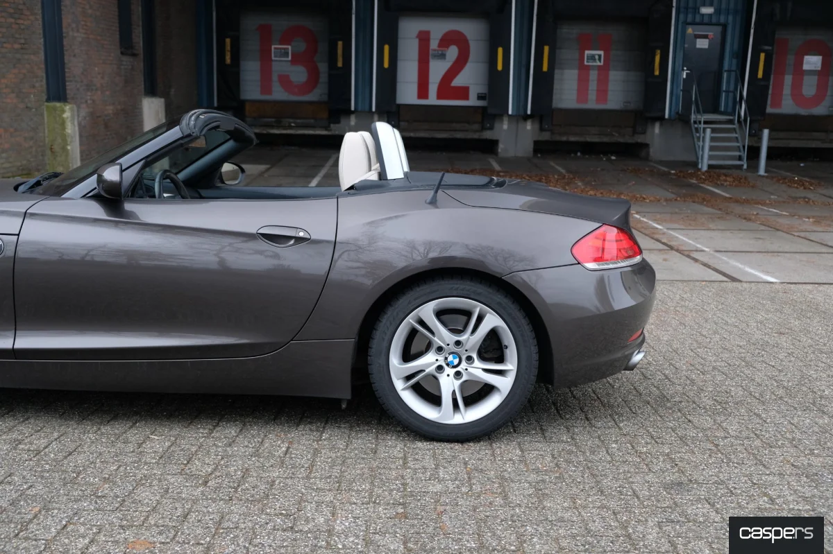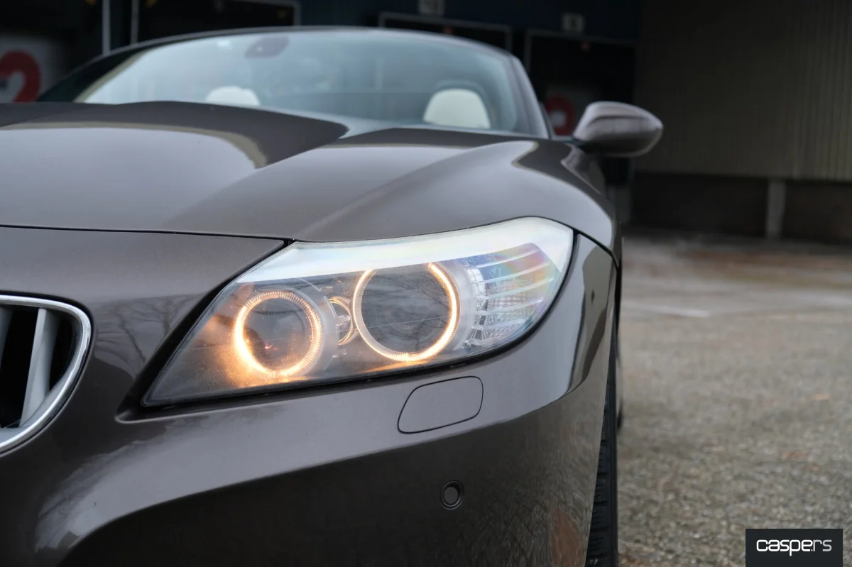 Wat deze specifieke Z4 extra bijzonder maakt, is de iconische kleurstelling: diep Havanna Bruin Metallic die prachtig contrasteert met het Pure White leder/Alcantara interieur. De combinatie met Edelhout Fineline Antraciet zorgt voor een exclusieve en stijlvolle ambiance die je niet vaak ziet bij dit model.