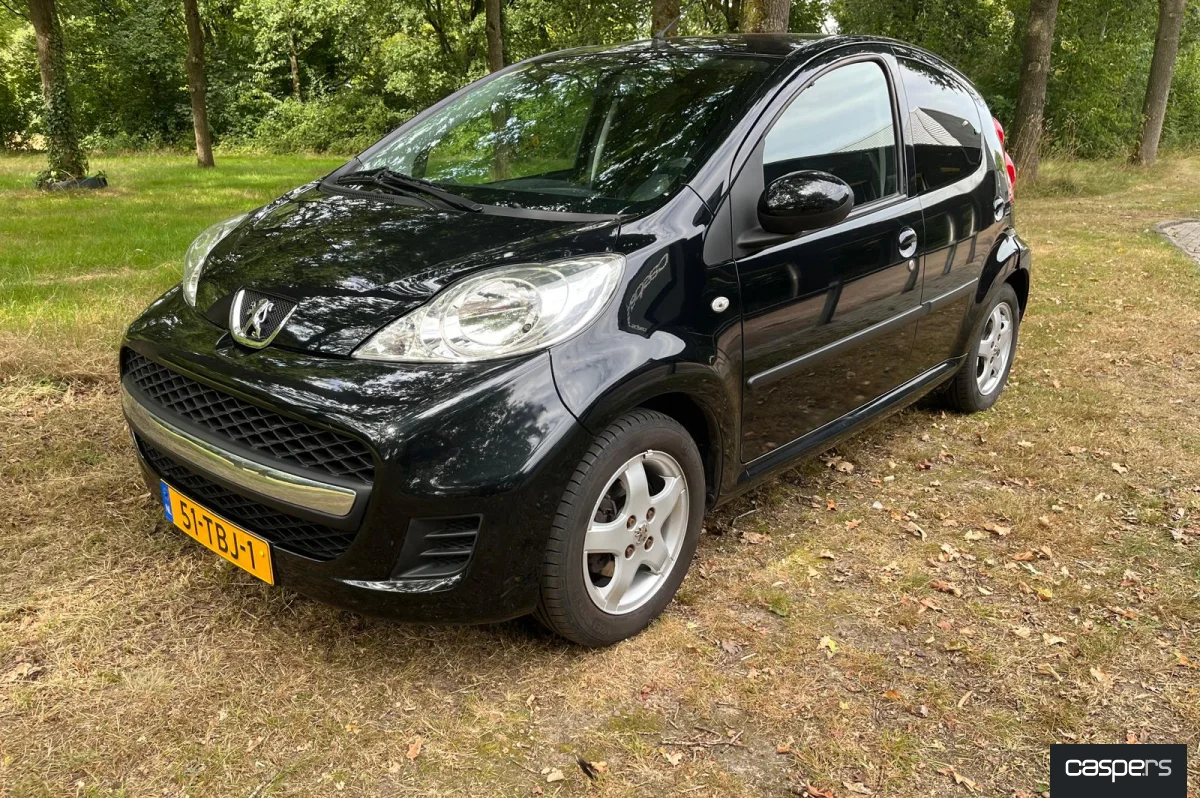 Heerlijke Peugeot 107. Vooral de uitvoering is leuk, bijzondere bekleding maakt deze auto van binnen een stuk aangenamer.