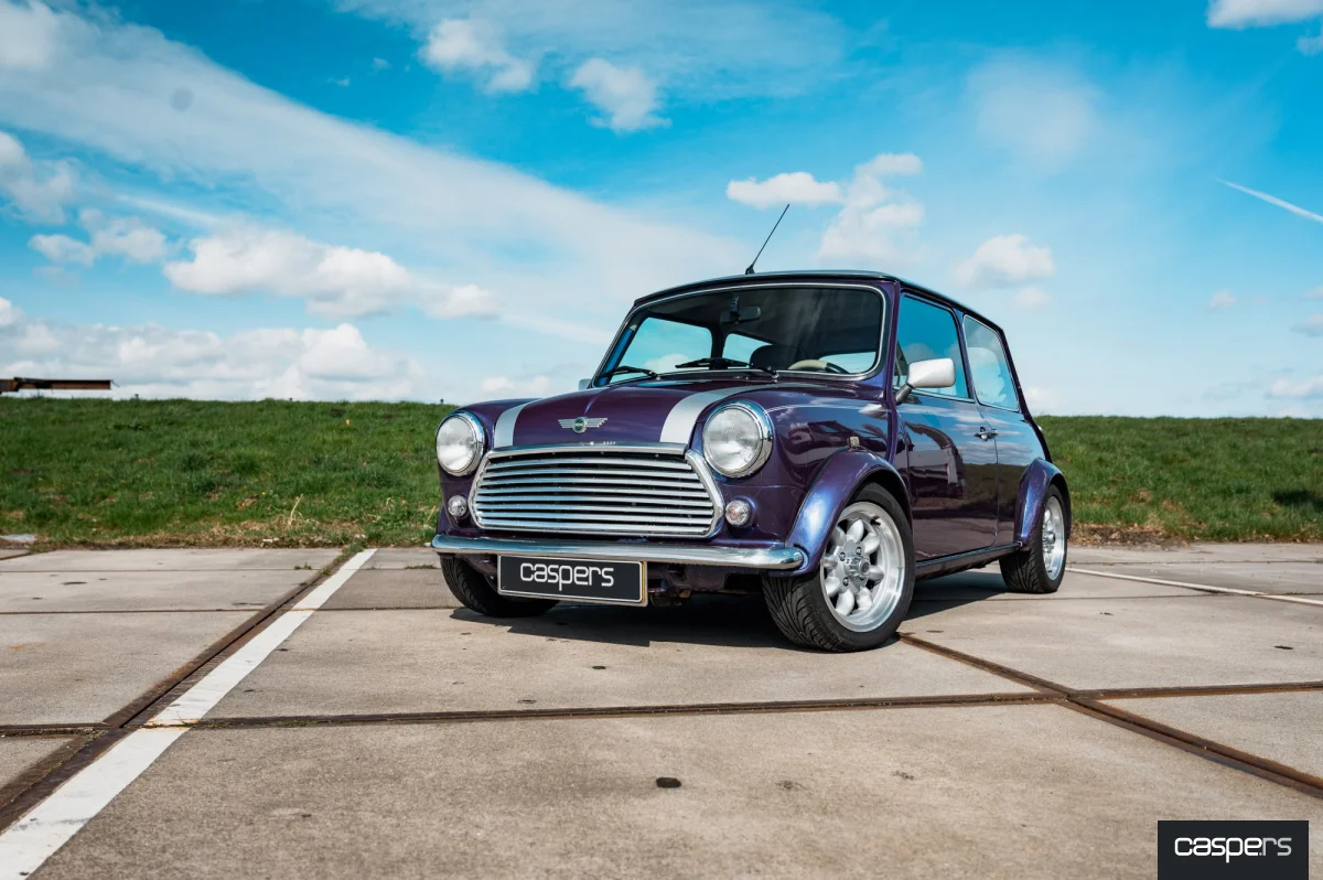 Net binnen: een prachtige Rover Mini 'Classic' van 1998.